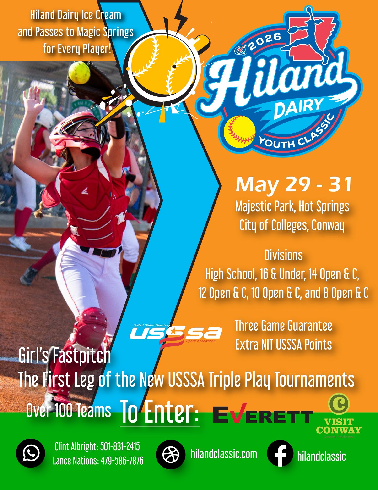 The Hiland Dairy Youth Classic is an exciting new event for youth softball teams in Arkansas and surrounding states. It has been formed by the Creators and Directors of the Busch Softball Classic, Clint and Marla Albright, and Arkansas’s Oldest dairy, Hiland Dairy. We have formed a leadership team dedicated to producing this exciting softball event that each year will be a “must play” for teams all over the South. Our ideas, energy and attention to detail will allow this event to expand rapidly. Please have your team come be part of this exciting softball experience.
